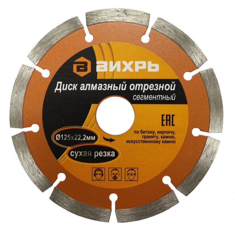 Диск алмазный отрезной сегментный 125х22,2 мм,сухая резка Вихрь