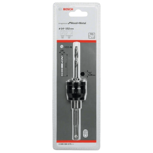 Переходник Bosch Power Change BiM хвостовиком SDS-plus. С центрирующим сверлом HSS-G. Для коронок серии Bosch BiM Progressor (Wood/Metal) O 14-152 мм.