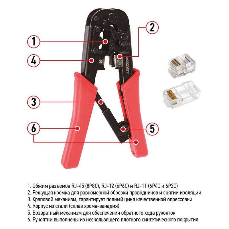 | Тип наконечника: | RJ45, RJ12, RJ11 |