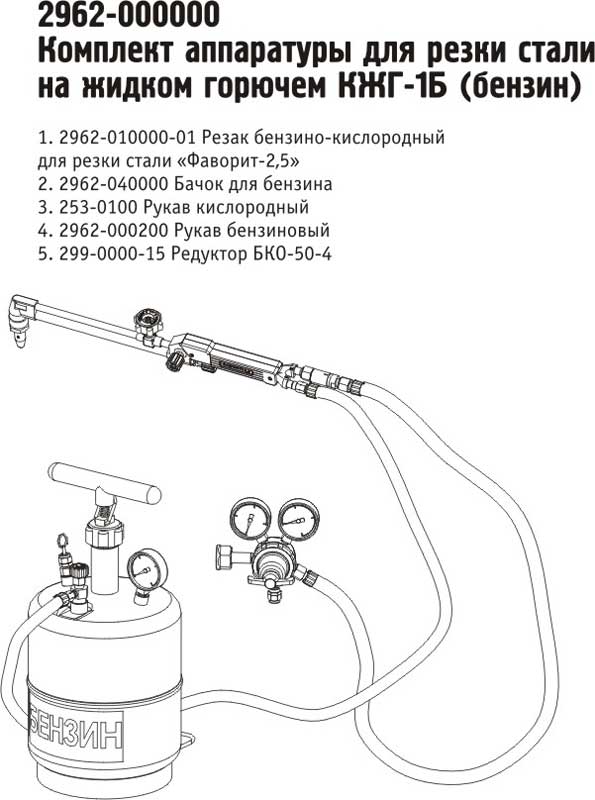 Комплект КЖГ-1Б (бензино-кислородной резки), БАМЗ предназначен для ручной разделительной резки сталей с использованием в качестве горючего бензина.