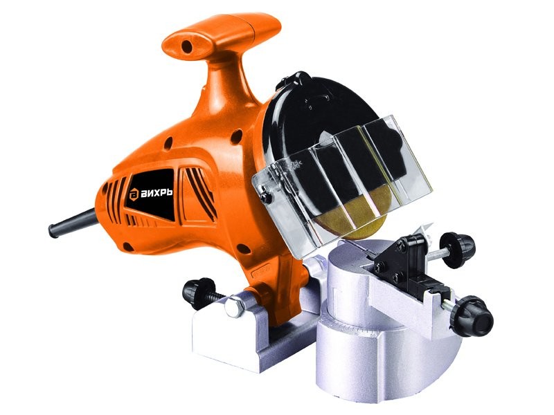 Станок для заточки цепей ВИХРЬ СЗЦ-200 предназначен для заточки цепей бензиновых или электрических пил с разным шагом цепи. Настройка механизма осуществляется при помощи специальных регулировочных винтов. Вентиляционные отверстия корпуса обеспечивают своевременный отвод тепла от внутренних узлов. Удобная направляющая рукоятка обеспечивает простоту эксплуатации. Прочный корпус препятствует механическому повреждению внутренних узлов модели, что способствует ее долгому сроку службы. Массивное литое основание отличается высоким уровнем устойчивости, что исключает случайное переворачивание устройства в ходе работ. Щиток из прозрачного пластика защищает оператора от искр, вылетающих в процессе эксплуатации станка для заточки цепей ВИХРЬ СЗЦ-200.