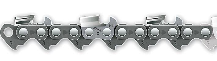 Пильная цепь Rapid Micro Comfort (RMC) для садоводства и лесного хозяйства. Приподнимаемая задняя часть режущего зуба для гашения вибрации, мягкий рез.