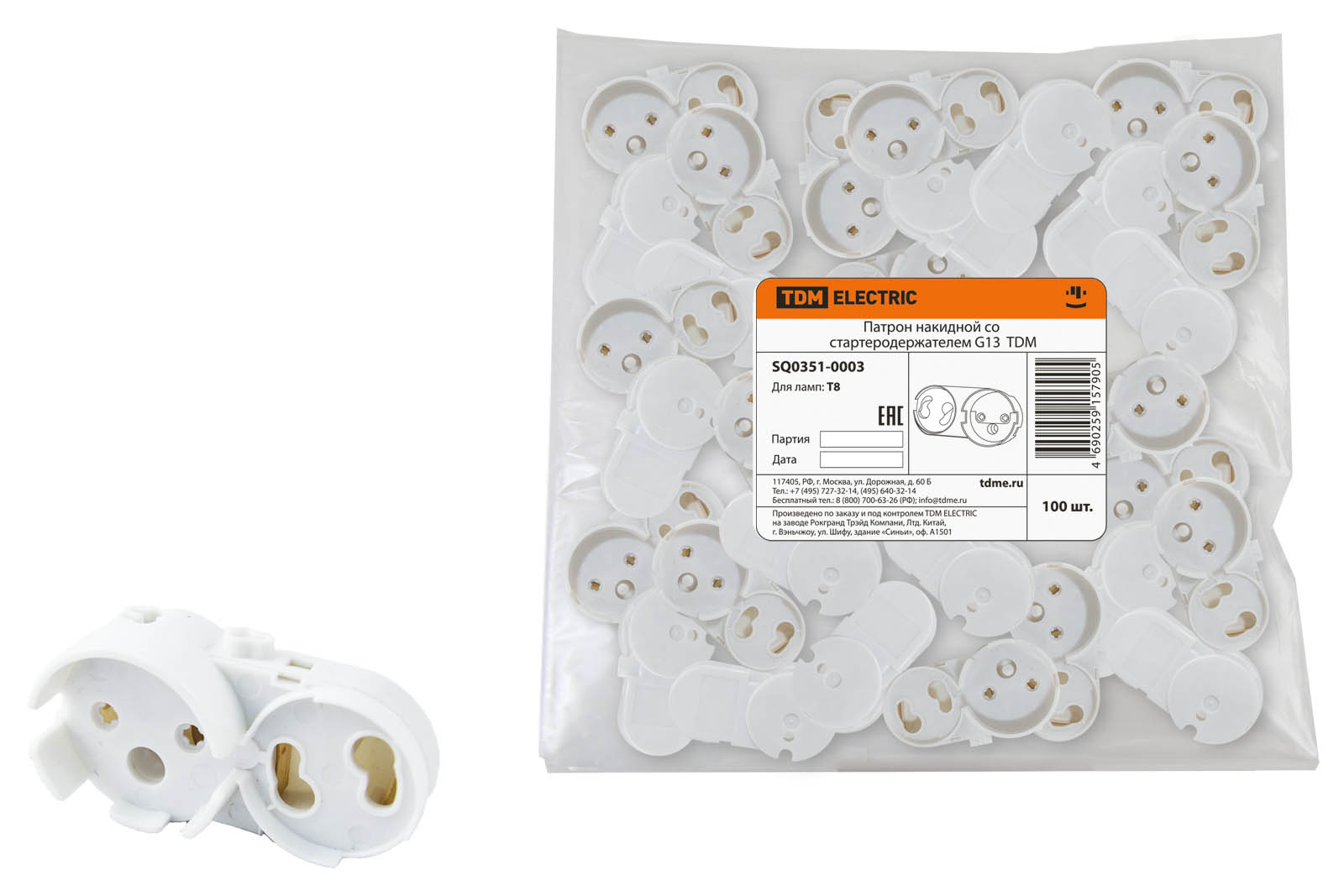 / Каталог / Светотехника / Управление освещением и комплектующие / Патрон G13 со стартеродержателем накидной TDM