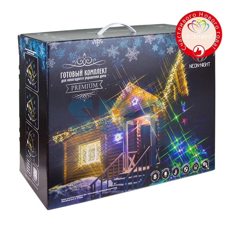 • Четыре облицовочные гирлянды «Бахрома» (3 шт размером 4,8*0,6 м и одну 2,4*0,6 м), которые станут прекрасным украшением крыши вашего дома.