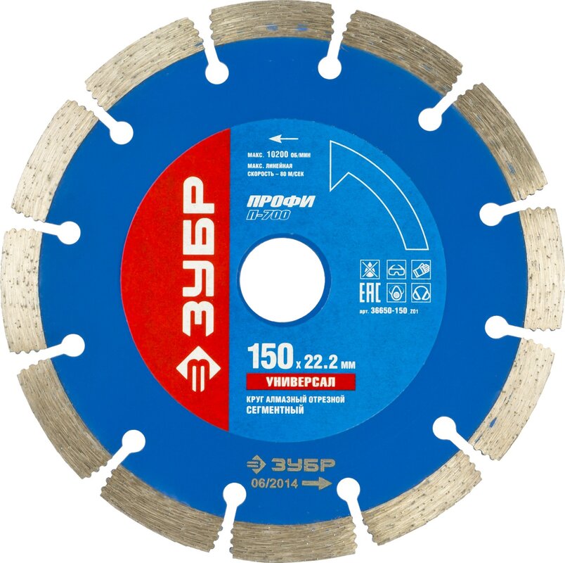Круг отрезной алмазный для УШМ, ЗУБР, ПРОФЕССИОНАЛ, 36650-150_z01