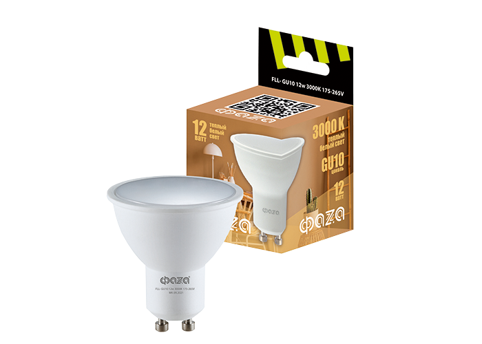 / Каталог / Источники света, лампы / Лампы светодиодные / Лампа светодиодная FLL- GU10 12w 5000K 175-265V ФАZA