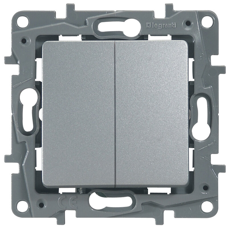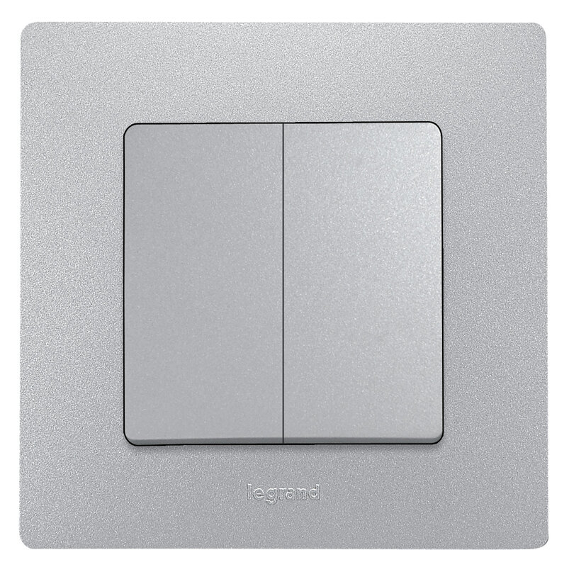 / Каталог / Электроустановочные изделия / Розетки и выключатели / Legrand Etika / Переключатель 2-клавишный 10А, авт. клем Алюм Legrand Etika