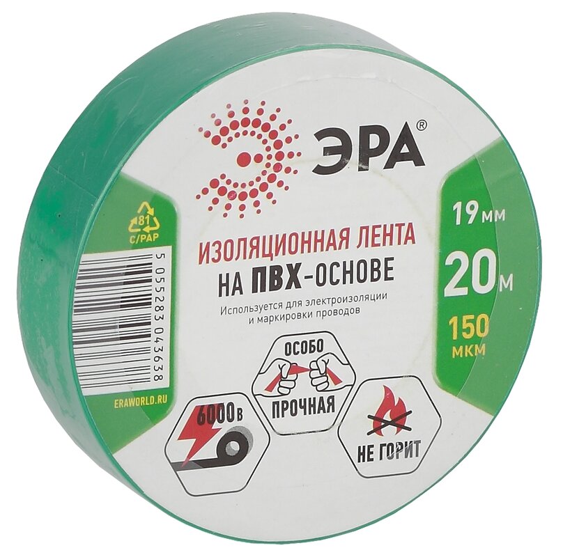 Изолента ПВХ 19ммх20м зеленая ЭРА