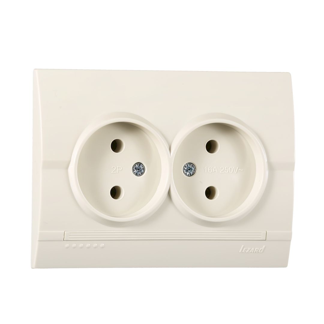 / Каталог / Электроустановочные изделия / Розетки и выключатели / Lezard Deriy / Розетка двойная б/з керамика крем DERIY