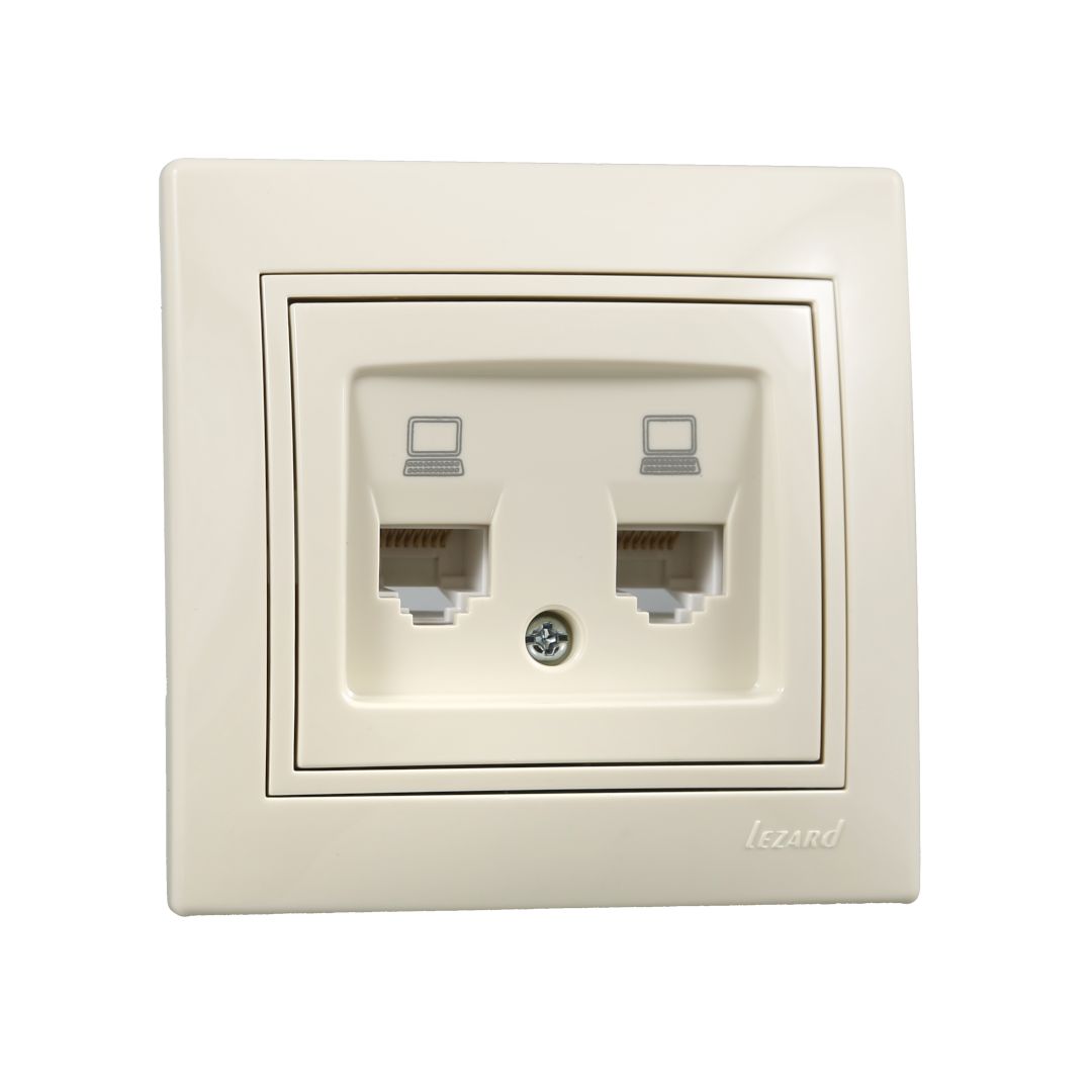 / Каталог / Электроустановочные изделия / Розетки и выключатели / Lezard Mira / Розетка компьютерная двойная кремовый MIRA