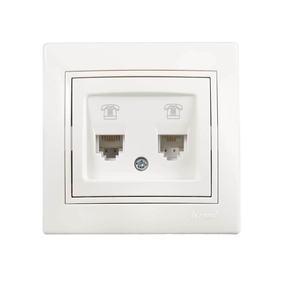 / Каталог / Электроустановочные изделия / Розетки и выключатели / Lezard Mira / Розетка телефонная двойная евро белый MIRA