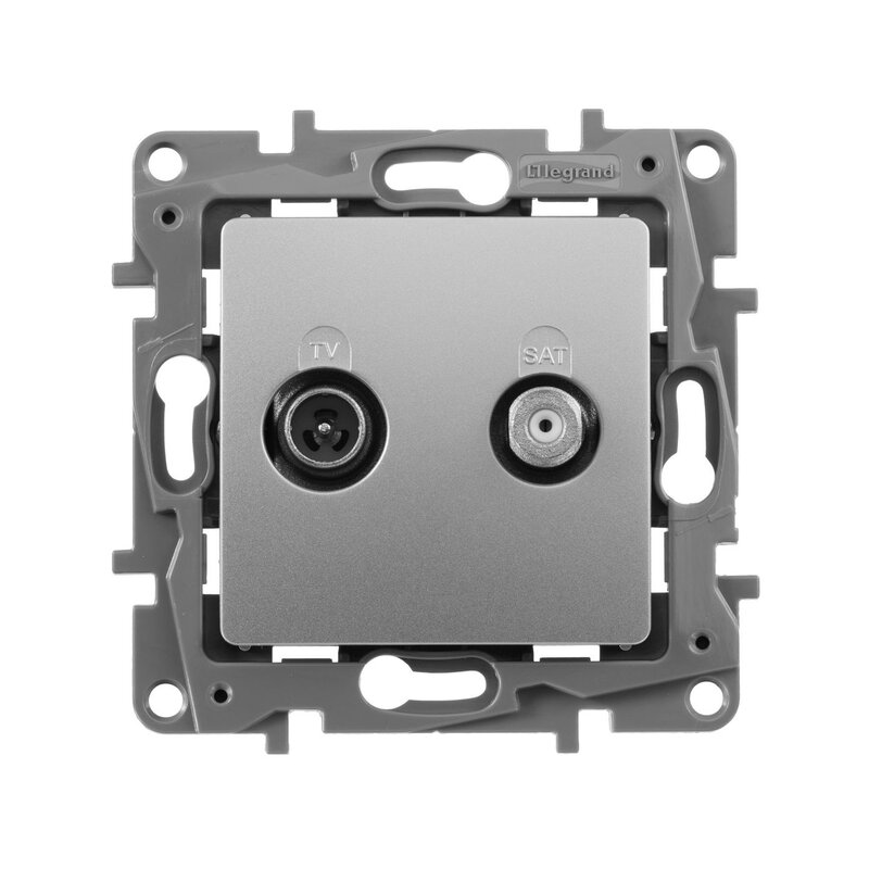 / Каталог / Электроустановочные изделия / Розетки и выключатели / Розетка TV/SAT 2-х кабельная Алюминий Legrand Etika