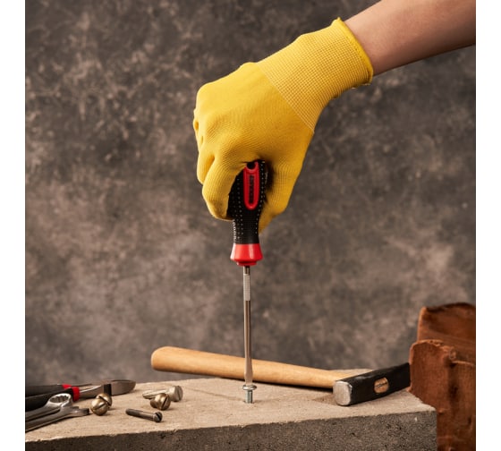 Стержень отвертки изготовлен из высококачественной стали и устойчив к коррозии и высокой нагрузке.