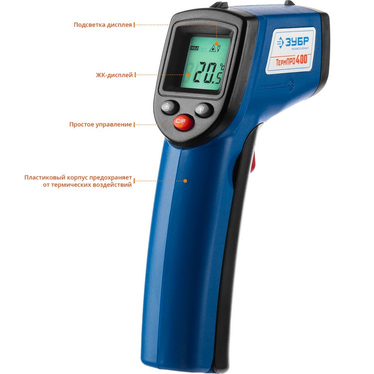 / Каталог / Контрольно-измерительные приборы / Пирометры / Пирометр инфракрасный -50С +380С, ТермПро-400, ЗУБР Профессионал