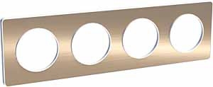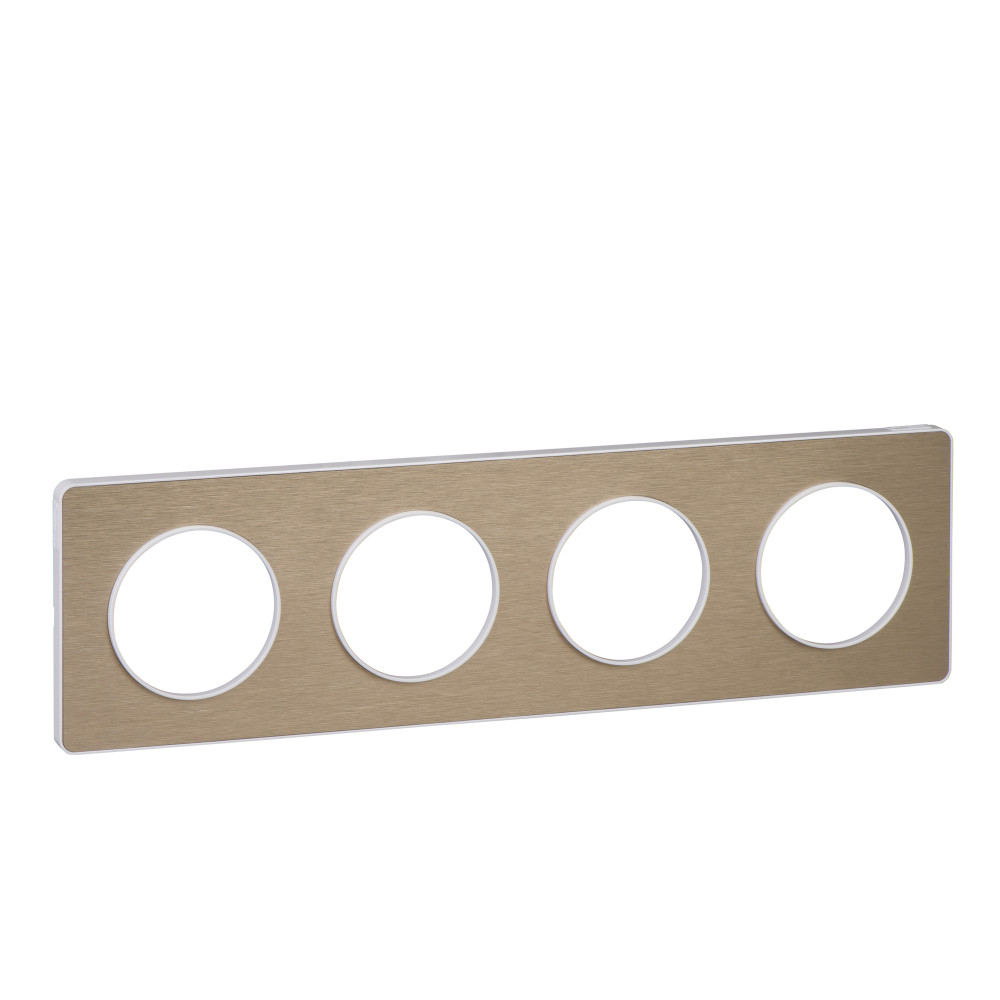 / Каталог / Электроустановочные изделия / Розетки и выключатели / Рамки / Рамка - 4 поста H/V71 - белый & матовая металлическая бронза Odace