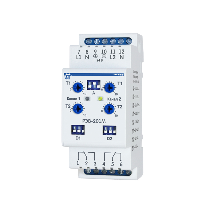 Двухканальное реле времени с задержкой на включение РЭВ-201М предназначено для коммутации электрических цепей переменного тока 220В/50Гц и постоянного тока 24-100В с регулируемой задержкой времени включения от 0 до 36000с.