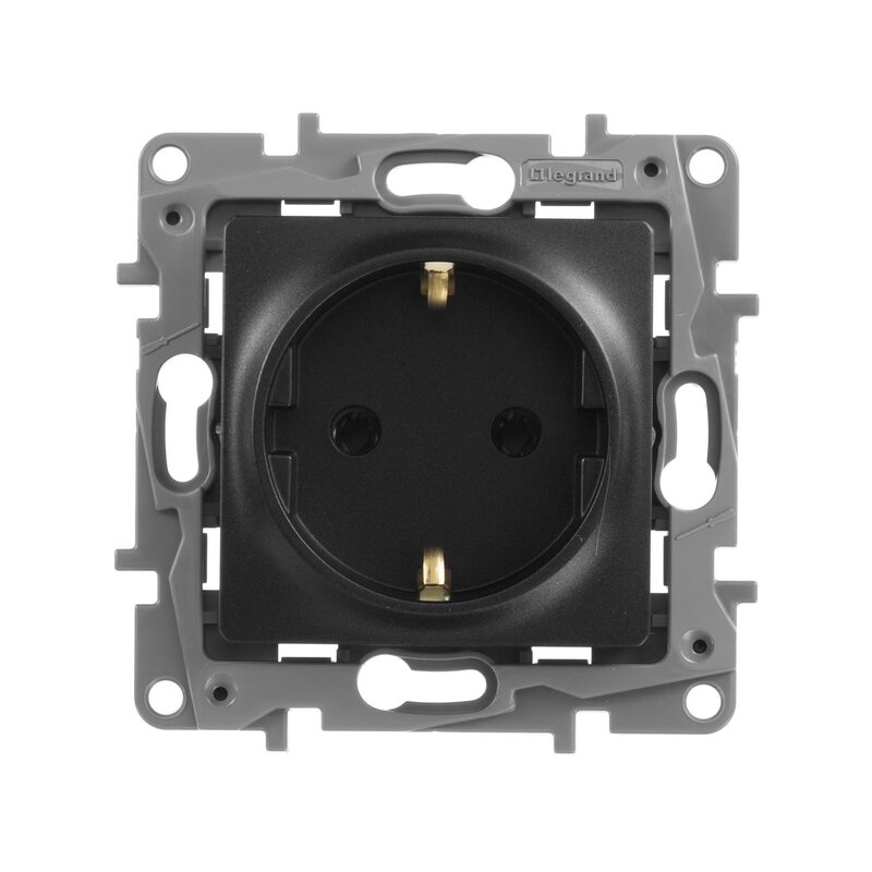 / Каталог / Электроустановочные изделия / Розетки и выключатели / Розетки / Розетка с/з 2п+З 220В винты Антрацит Legrand Etika