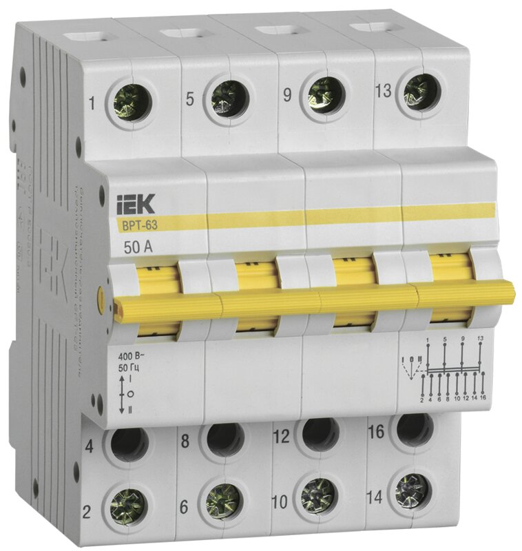 / Каталог / Коммутационное оборудование / Рубильники и выключатели нагрузки / Выключатель-разъединитель трехпозиционный ВРТ-63 4P 50А IEK