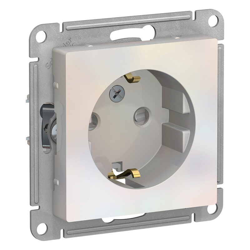 / Каталог / Электроустановочные изделия / Розетки и выключатели / Schneider AtlasDesign / Розетка с заземлением со шторками, 16А, механизм, ЖЕМЧУГ