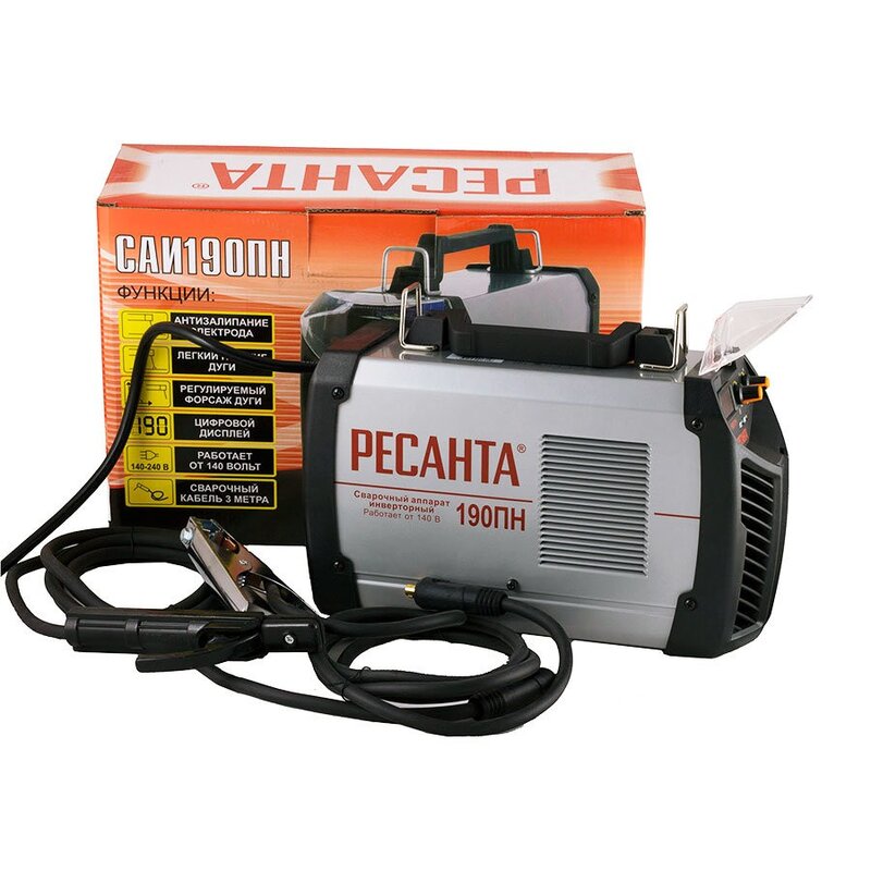 / Каталог / Сварочное оборудование / Сварочные аппараты / Сварочный аппарат инверторный САИ 190ПН Ресанта