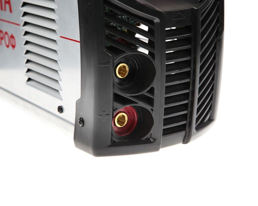 Регулятор сварочного тока на передней панели позволяет выставить нужный ток в зависимости от диаметра электрода. Кроме того, аппарат оснащен регулировкой форсажа дуги. Цифровой дисплей наглядно отображает параметры сварочного тока.