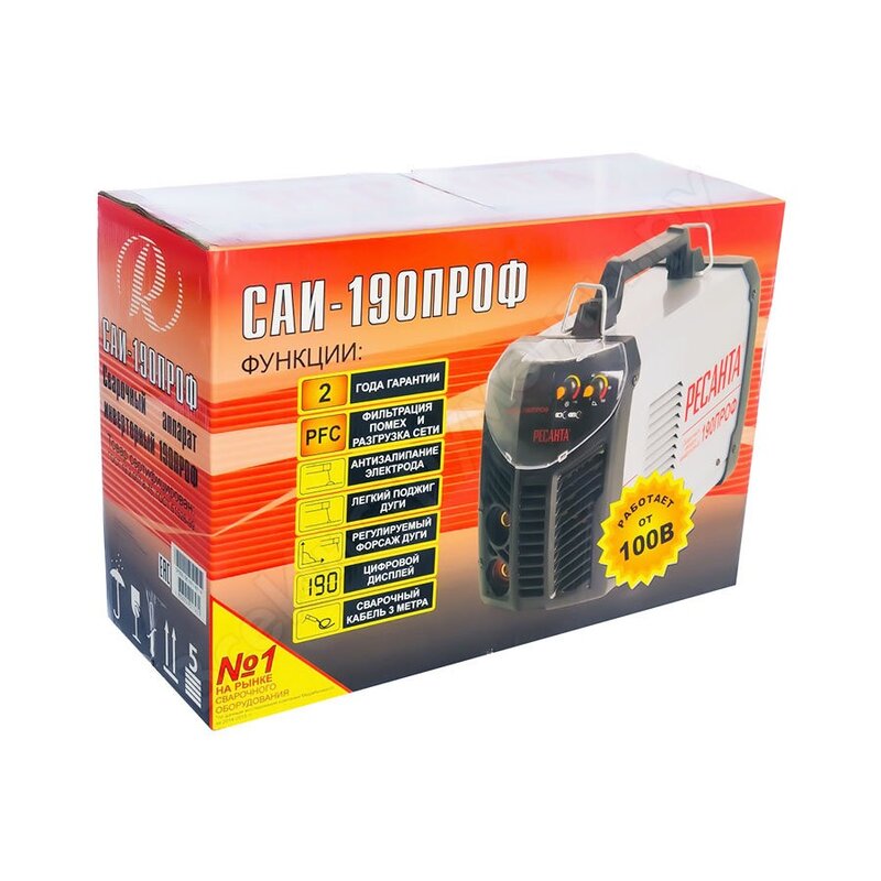 Сварочный аппарат РЕСАНТА САИ-190ПРОФ относится к классу профессиональных аппаратов, предназначен для использования на производстве. Инвертор подходит для ручной электродуговой сварки покрытым электродом диаметром до 6 мм.