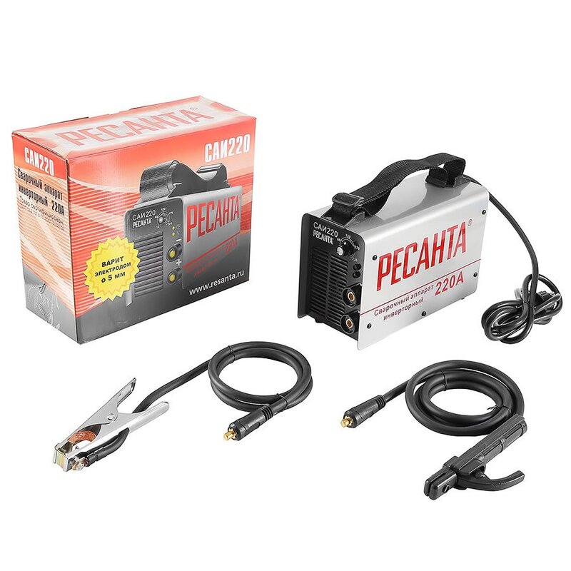 Инверторный сварочный аппарат Ресанта САИ-220 подходит для сварки металлических конструкций постоянным током покрытым электродом до 5 мм. Сварочный ток регулируется от 10 до 220 А ровных сварных швов и для более точной работы.