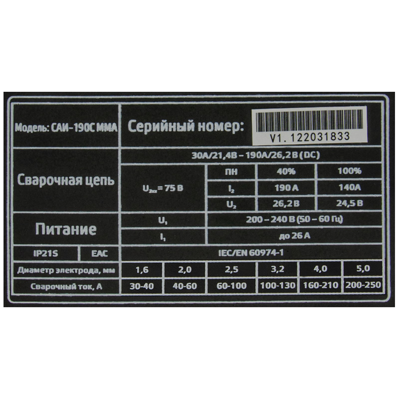 / Каталог / Сварочное оборудование / Сварочные аппараты / Сварочный аппарат САИ-190С ММА ЭНЕРГИЯ