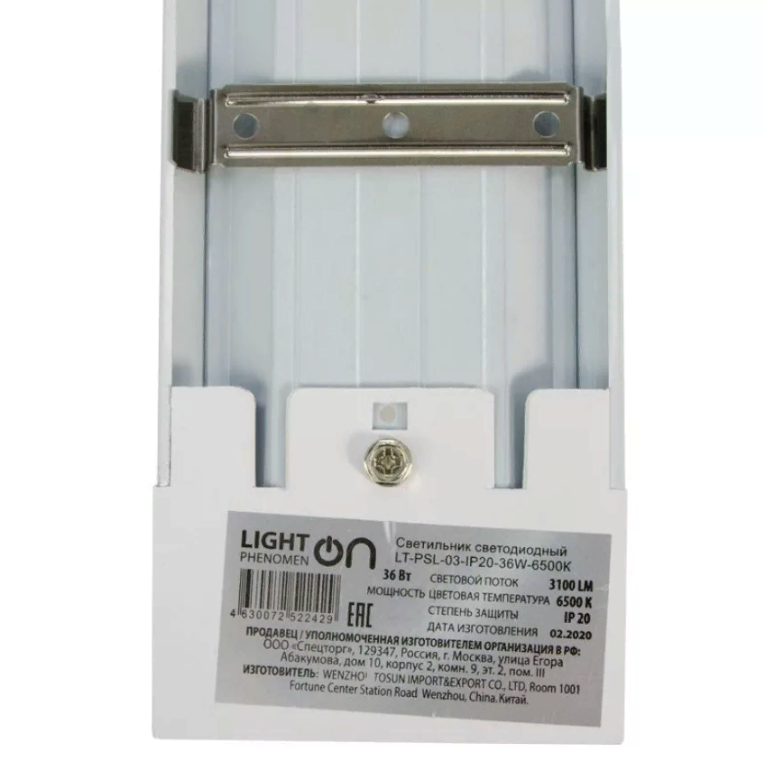 Корпус светильника LT–PSL–03–IP20 стальной с порошковым покрытием, рассеиватель – опаловый полистирол.