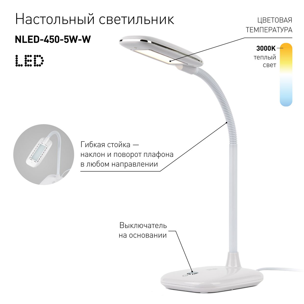 Светильник NLED-450-5W-W белый, настольный