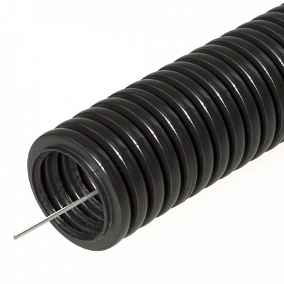 / Каталог / Электромонтаж и прокладка кабеля / Трубы пластиковые / Труба гофрированная ПНД безгалогенная (HF) черная с/з d32 мм (25м/1375м уп/пал) Строитель