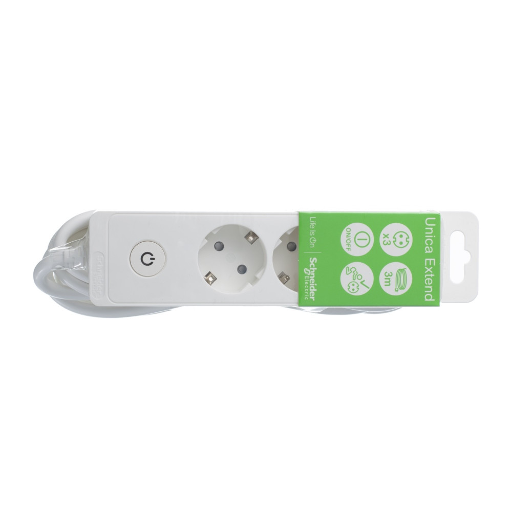 / Каталог / Электроустановочные изделия / Удлинители / Удлинитель 3 розетки 2К+З, кабель 3м, БЕЛЫЙ