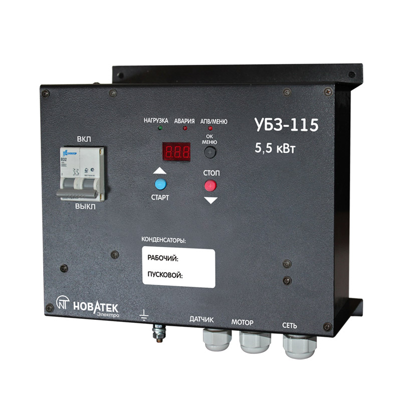 УБЗ-115 предназначен для защиты однофазных асинхронных электродвигателей мощностью до 5,5 кВт (25А).