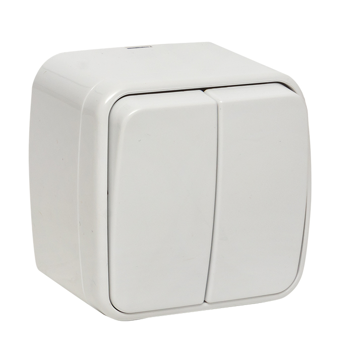 / Каталог / Электроустановочные изделия / Розетки и выключатели / Минск Выключатель 2-клавишный ОП 10А белый EKF Basic