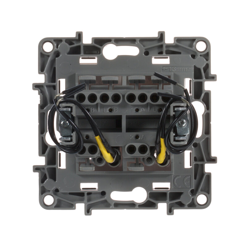 / Каталог / Электроустановочные изделия / Розетки и выключатели / Переключатель 2-клавишный с подсветкой белый автоматические зажимы 10AX