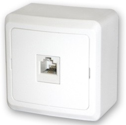 / Каталог / Электроустановочные изделия / Розетки и выключатели / Розетка телефонная ОП с задней стенкой белая Powerman