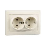 / Каталог / Электроустановочные изделия / Розетки и выключатели / Розетка двойная с/з керамика кремовый MIRA