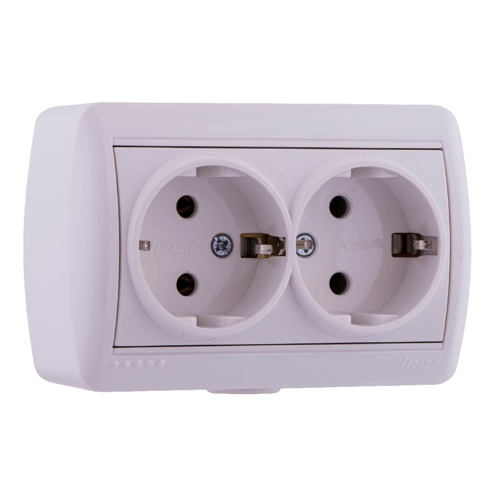 / Каталог / Электроустановочные изделия / Розетки и выключатели / Розетка двойная с/з керамика з/к белый NATA