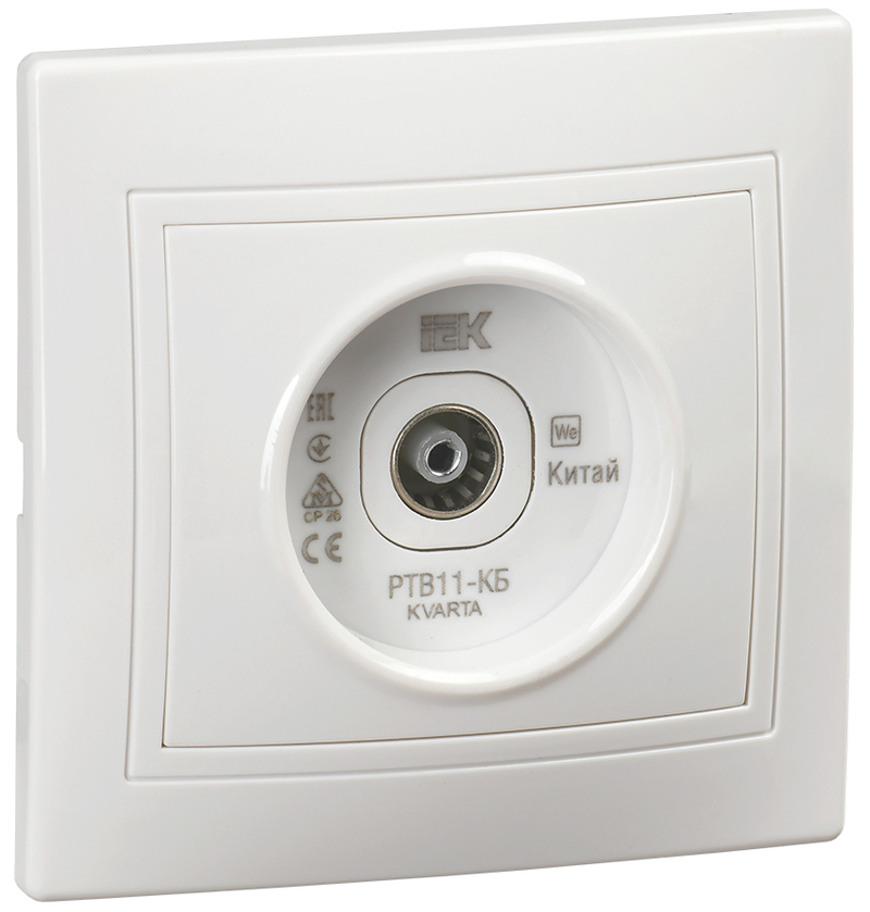 / Каталог / Электроустановочные изделия / Розетки и выключатели / Розетка телевиз. проход. КВАРТА РТВ11-КБ бел. IEK
