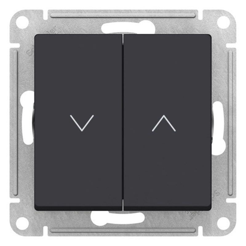 Механизм выключателя жалюзи 2-клавишного Systeme Electric (ранее Schneider Electric) серии AtlasDesign в цвете карбон подходит для сетей 250 В, на ток 10 А.