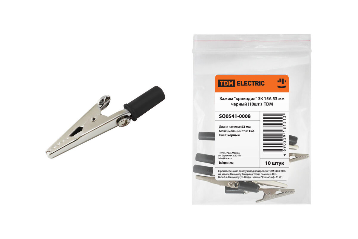 Зажим "крокодил" ЗК 15А 53мм черный TDM